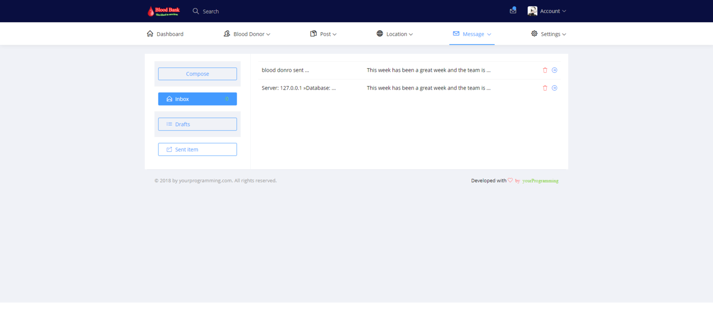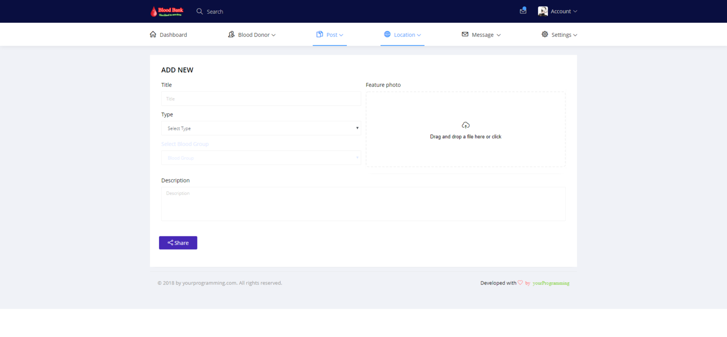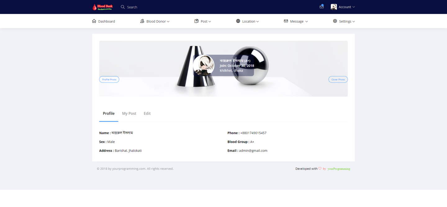 ‘Blood bank with social media’ is a web page platform. It will work as social media as well as blood bank. The system will collect blood donors & gave them an individual account for further activities. I normal blood donor can share this post over the system & system will show his/her post to all other members of the system. When a user/blood donor share his/her post, it will show a category, one is ‘general share’ for sharing opinion or status of mind and second one is ’blood related’. When a user share his/her post & if it is blood related post, one blood group will be selected by the user & then, system will sent a general message to all other users/member about this urgency of blood. This how a normal user can share his/her post and also can get blood donors if needed. We made this fully responsive so that every device can get an access. We use Codeigniter as a framework. It`s the most popular framework of php around the world. In the system an admin can manage complete website without having single line knowledge of coding or programming. This System allows multiple admin and unlimited members, posting, commenting etc. When a user request to be the member of the system. It will controlled by the system via emailing & for further it could be integrated with SMS getaway.