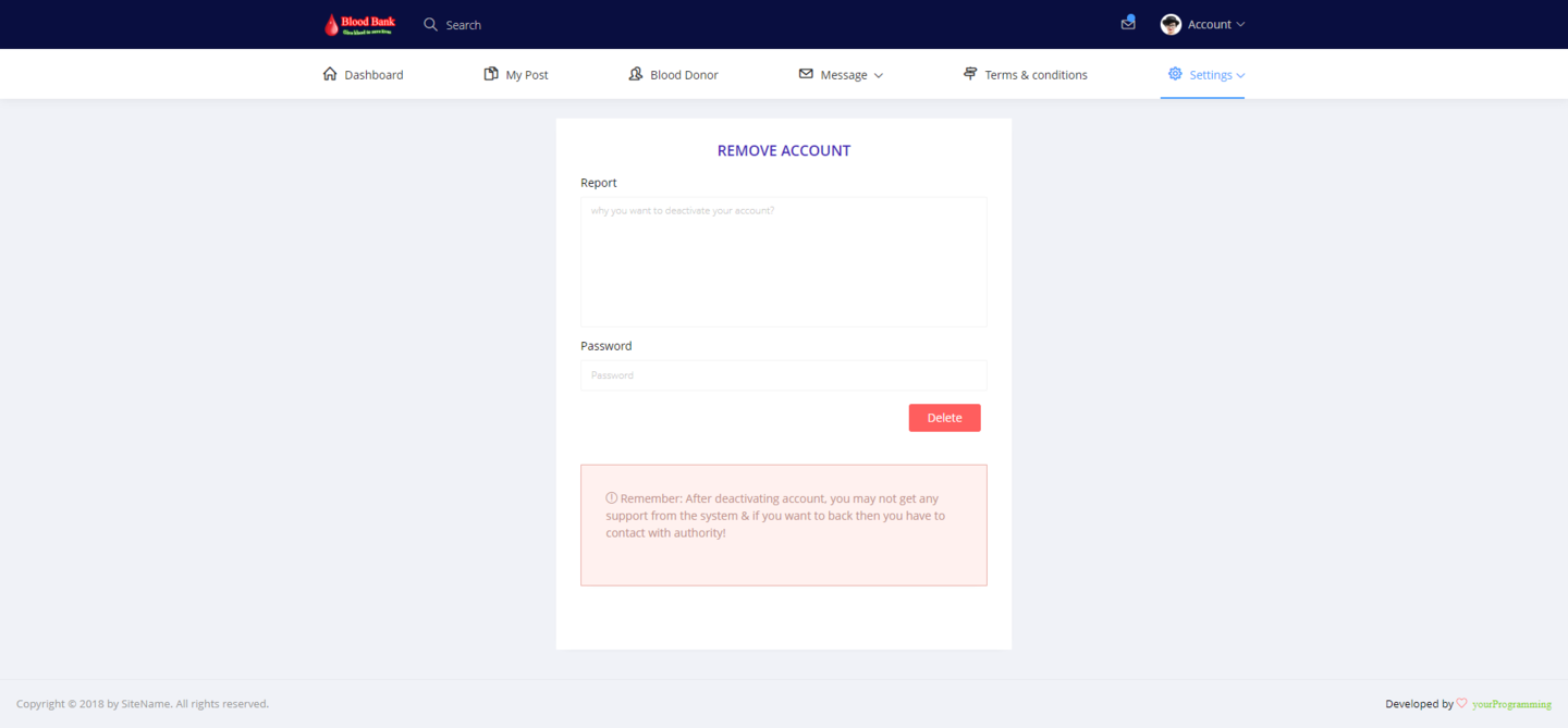We use a great view for the project with required update technologies. Like, comments and so on. Photo sharing, poste sharing, sending message to any other existing email via your system. A member / user can deactivate his/her account if needed etc. this how we tried to make it a full projects as blood bank and also as a social media