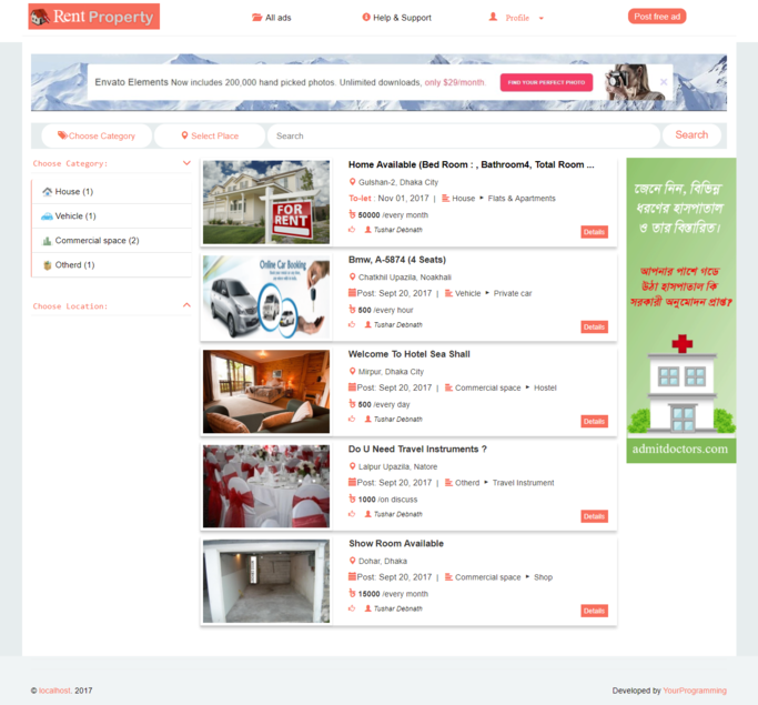 Rent Pro is complete solution for Rental based classic website. Nowadays, Classic Websites getting a huge traffic. You may start a new business online about rent any product/properties. Its a complete classic platform with latest technology.