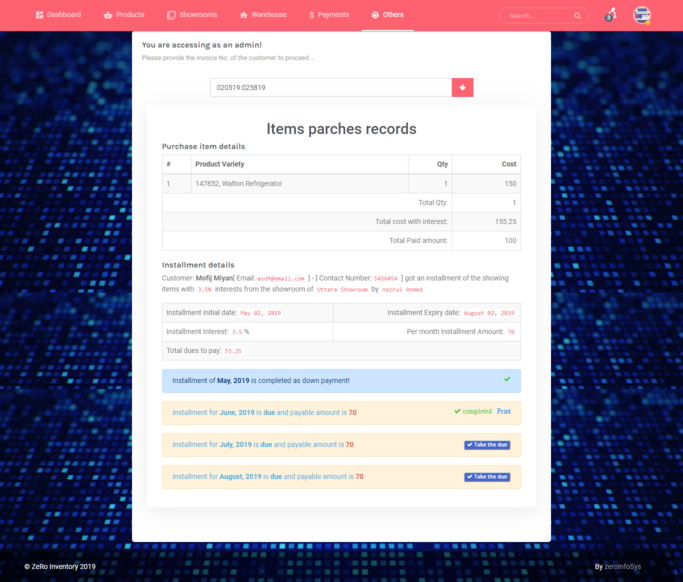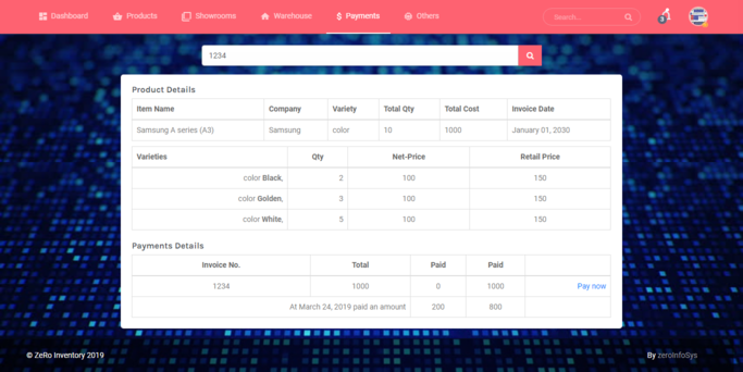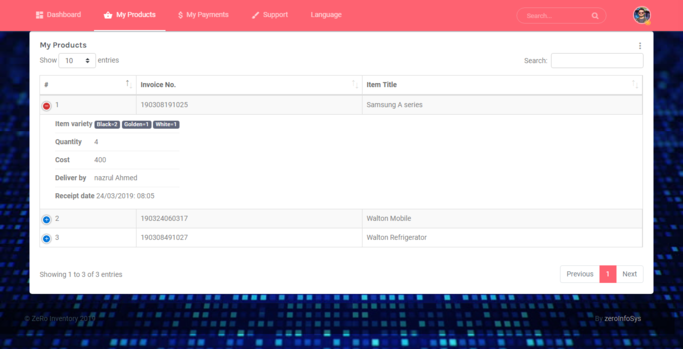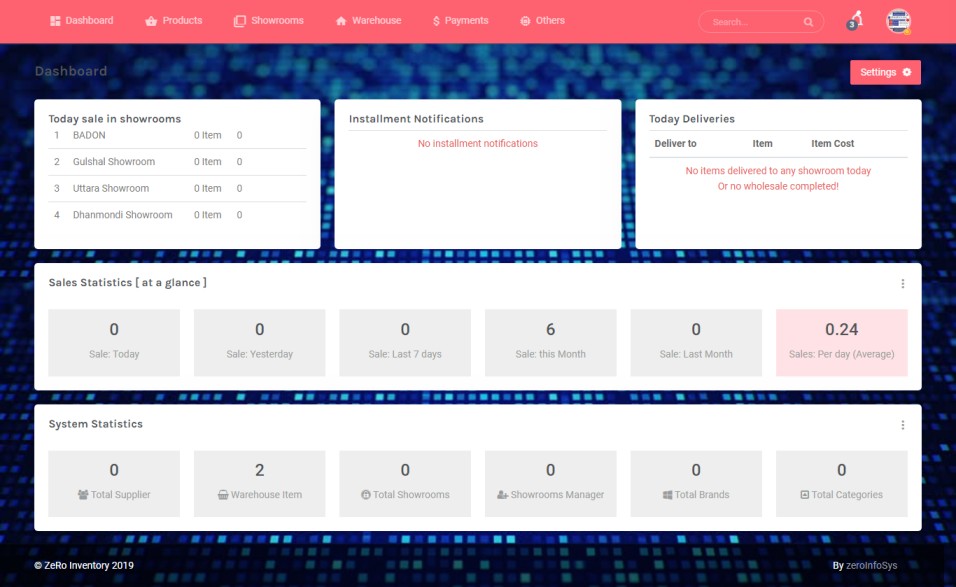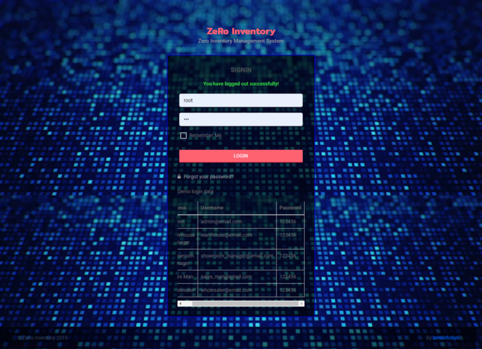 Zero Inventory Management System is a complete solution for inventory system for the business organization those who have warehouse, multiple showrooms, multiple showroom employees, wholesalers, Suppliers, warehouse managers etc. The system is designed in multiple languages so that anyone can get set up the system/software into their own language. 5 type of Access is already given. If you need more it might be done so easily as per requirements. Accesses are ---