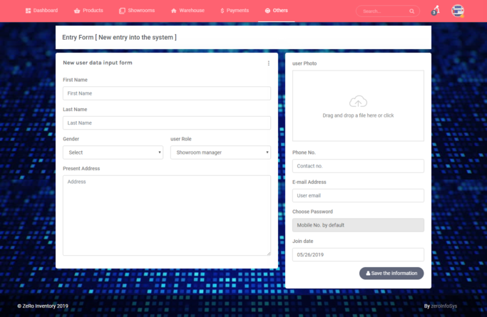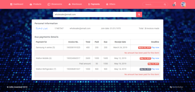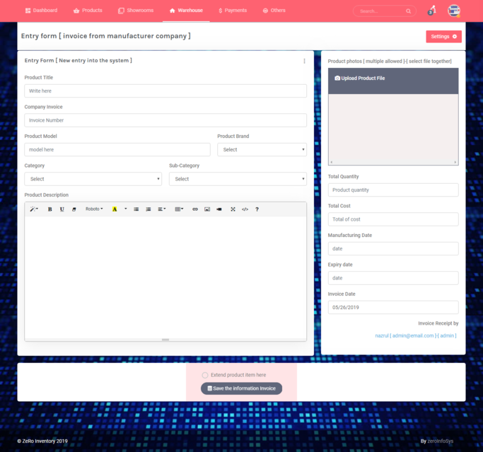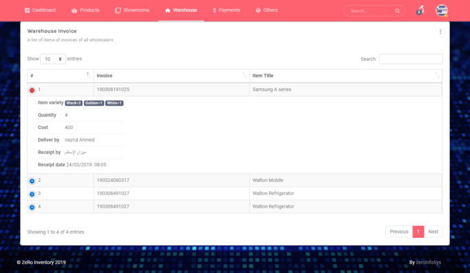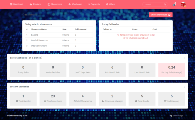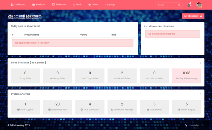 Zero Inventory Management System is a complete solution for inventory system for the business organization those who have warehouse, multiple showrooms, multiple showroom employees, wholesalers, Suppliers, warehouse managers etc. The system is designed in multiple languages so that anyone can get set up the system/software into their own language. 5 type of Access is already given. If you need more it might be done so easily as per requirements. Accesses are ---